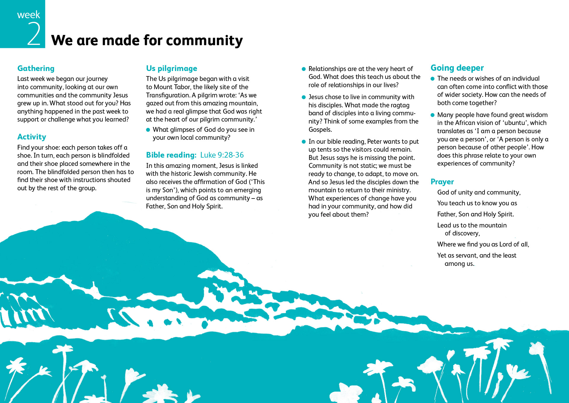 Charity US lent course. Design and illustration for A5 booklet and A6 concertina leaflet