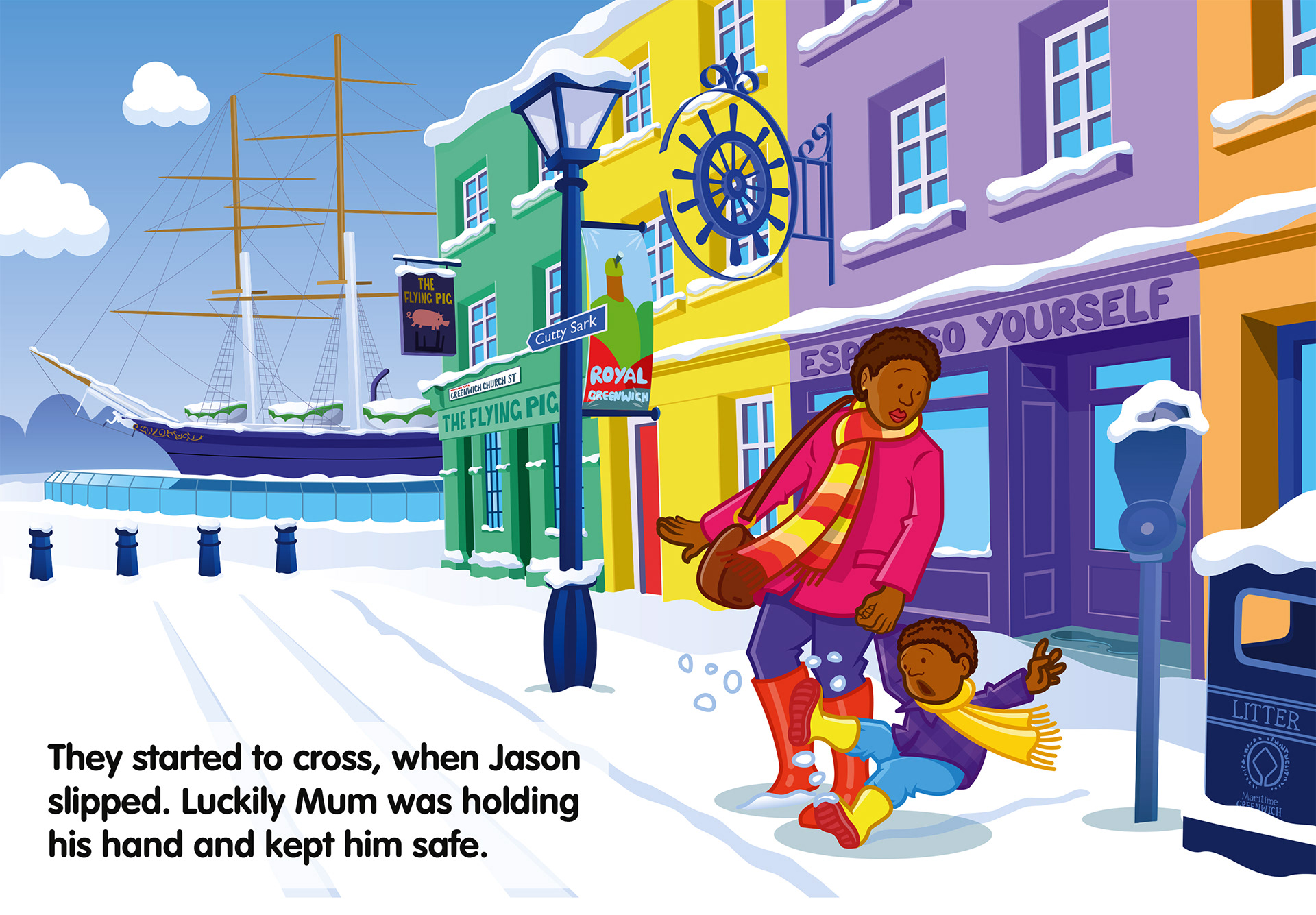 Illustrations for Children's Traffic Club London tender for TfL. A new style was developed and London-centric illustrations worked up, using the existing characters (that were eventually replaced). The pitch was successful, and Zinc Media won the contract, worth several million, to create and run the club.