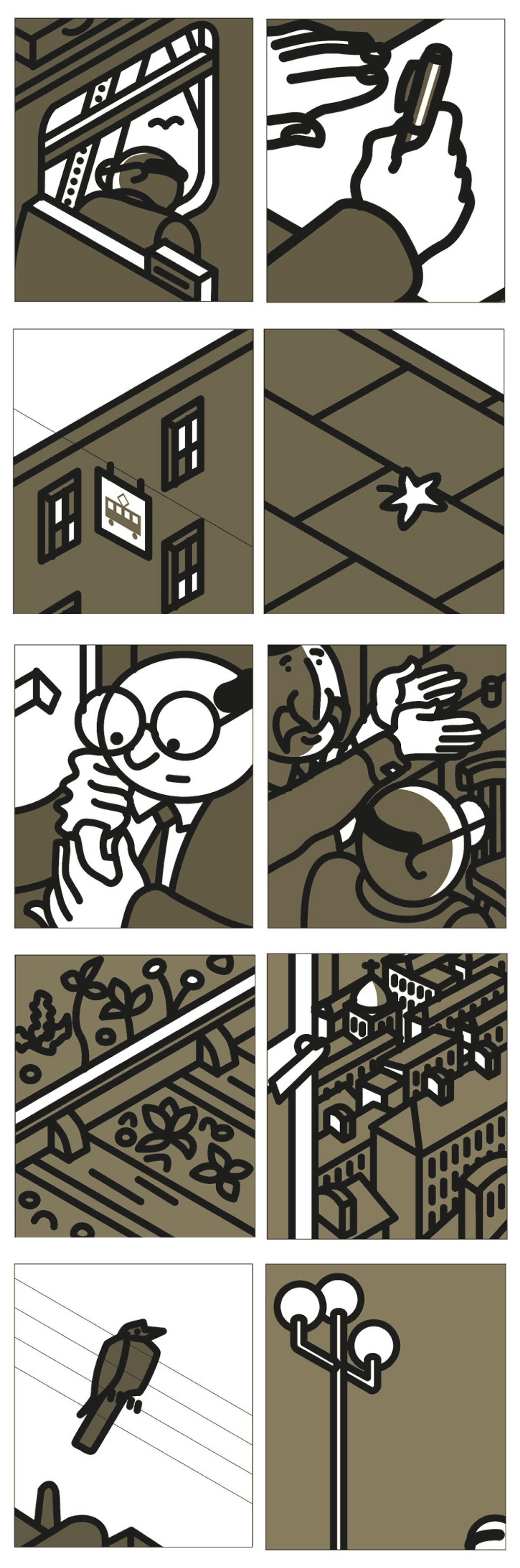 This was a final attempt to make the idea work, using minimalistic images, which worked well enough, but they were not human and engaging enough for this kind of story-telling.